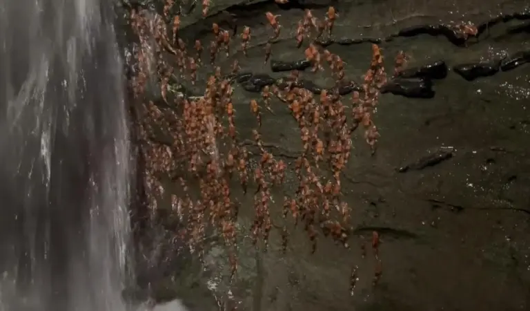 Дослідники спостерігали, як риби “накладалися” одна на одну на рівніших ділянках скель, де текли тонкі струмені води. На крутіших виступах вони рухалися короткими ривками, роблячи паузи перед наступним поштовхом.