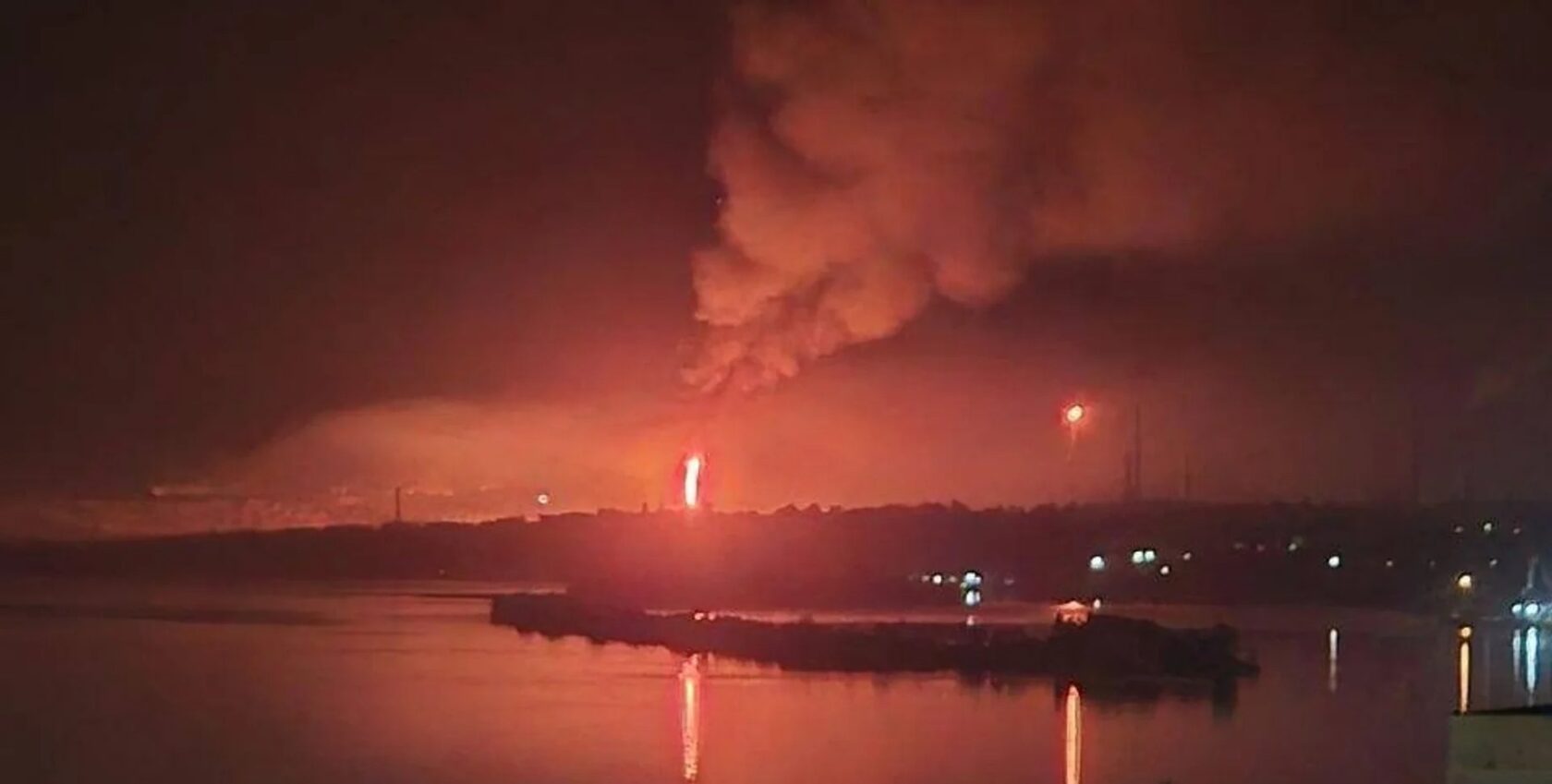 На відео, опублікованому у соцмережах, видно масштабну пожежу, яка спалахнула після удару дронів.
