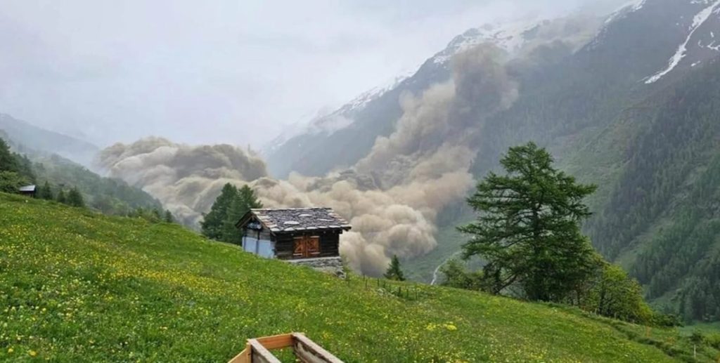 На жахливому відео, розміщеному на YouTube, видно, як маса льоду і каміння мчить вниз схилом гори в долину Летченталь у Бернських Альпах, де розташоване село Блаттен.